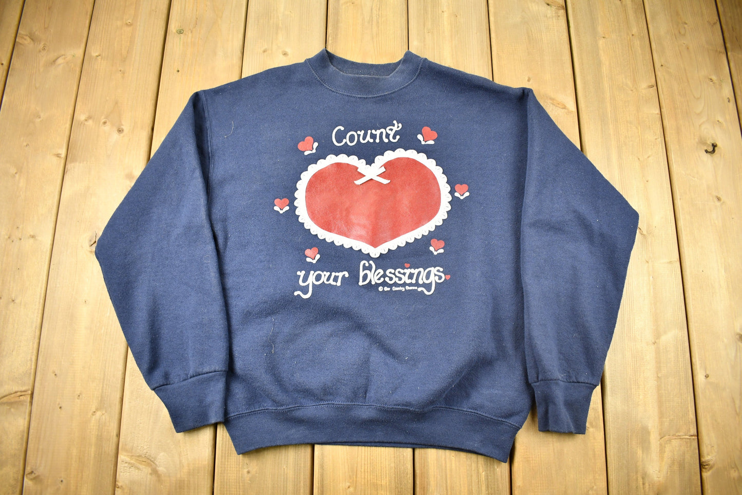 Vintage 1990s "Count Your Blessings" Cute Heart Crewneck
